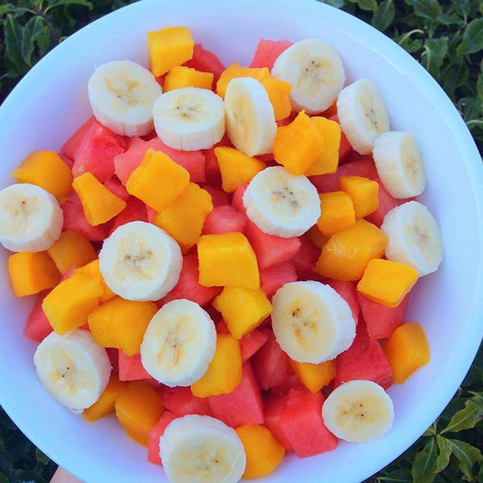 The only way to perfect a fruit salad is to add sliced bananas with chopped almonds and honey on top. As you can tell, pretty much anything tastes good with bananas.