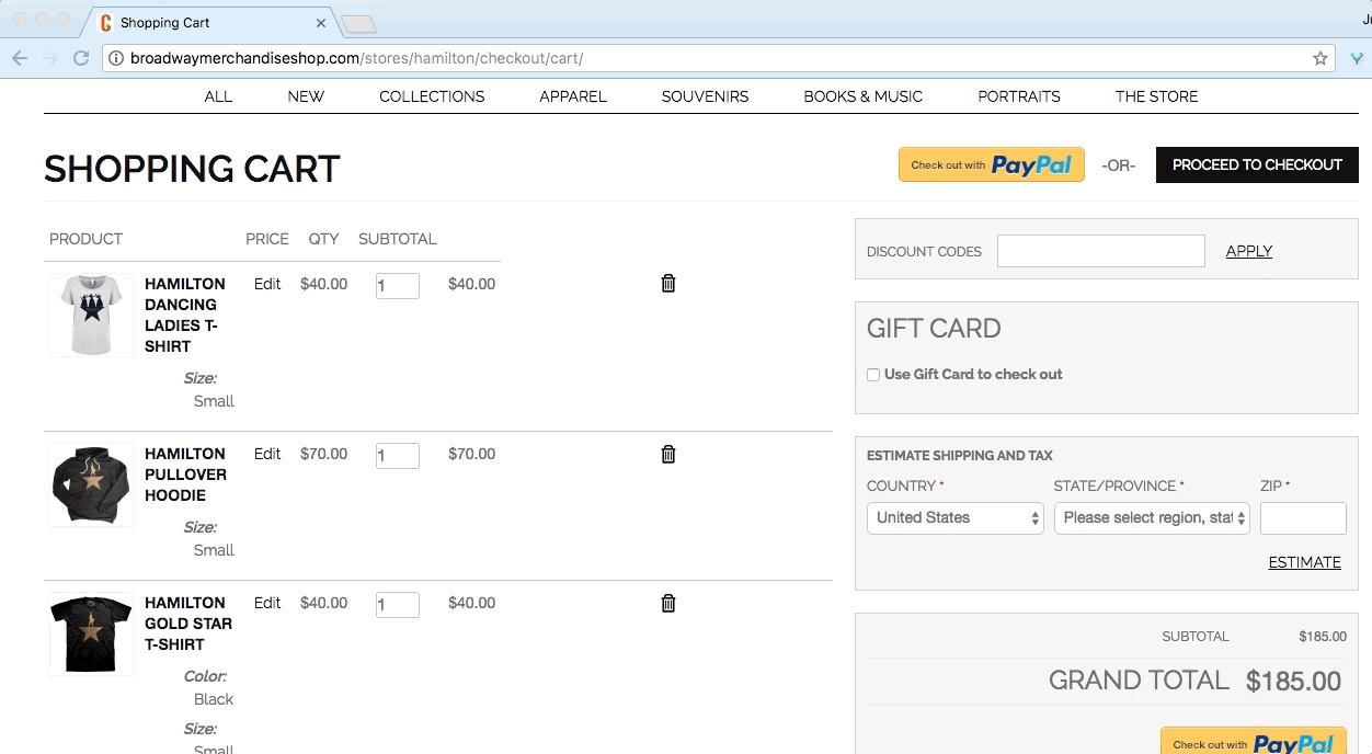 4. While you're at it, you also load up your online shopping cart with “Hamilton” apparel and other merch...