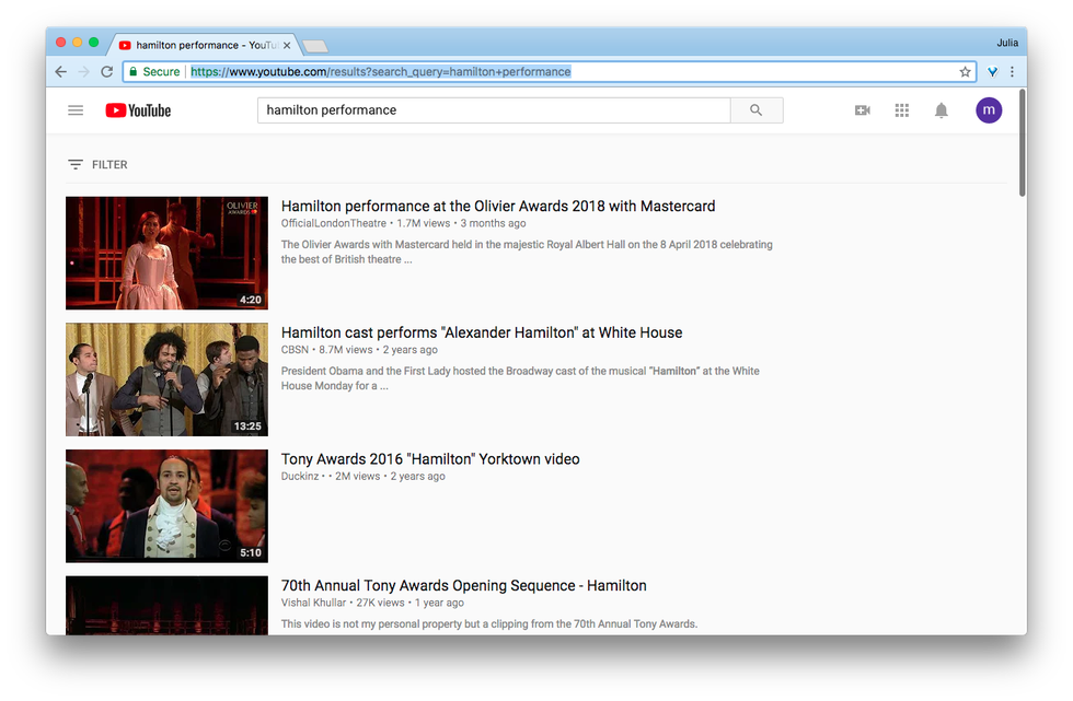 5. You scour YouTube for video footage of “Hamilton” productions or rehearsals...which turns out to be scarce. ☹️