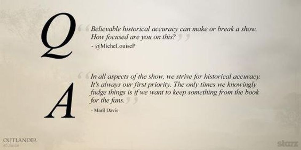 The historical accuracy is one of the major things I love about the show. From sets and costumes to Scottish Gaelic lessons and the lifestyle, Outlander is keeping it true to history, for the cast and the fans.