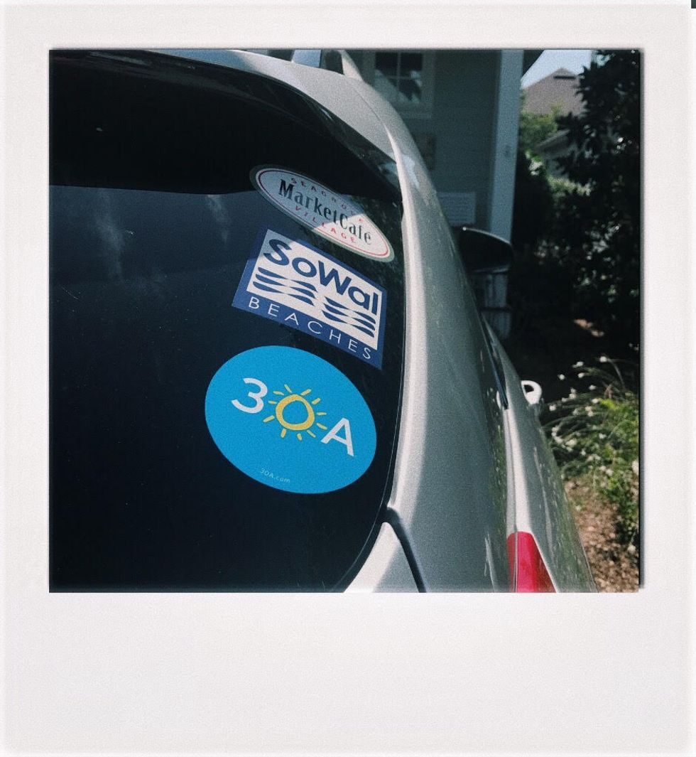 Seaside is crammed with SUV’s trying to find a parking place. These cars are the preferred mode of transportation to the Emerald Coast. Although each state below the Mason-Dixon is well represented by state license plates, each family truck has one thing in common: obnoxious, bright blue “30A” bumper stickers.