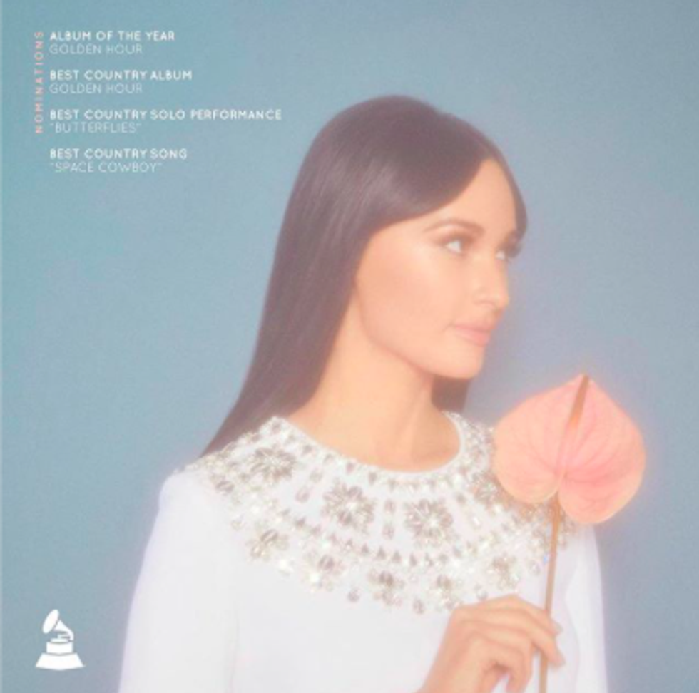 "Golden Hour" Kacey Musgraves fourth studio album just received four Grammy nominations, and SHE DESERVES ALL OF THE AWARDS. Previously winning Album of the Year on Apple Music, and Album of the Year at the CMA awards. Now the Grammys, Album of the Year, Country Song of the year ("Space Cowboy"), Best Country Solo Performance ("Butterflies"), and Best Country Album.