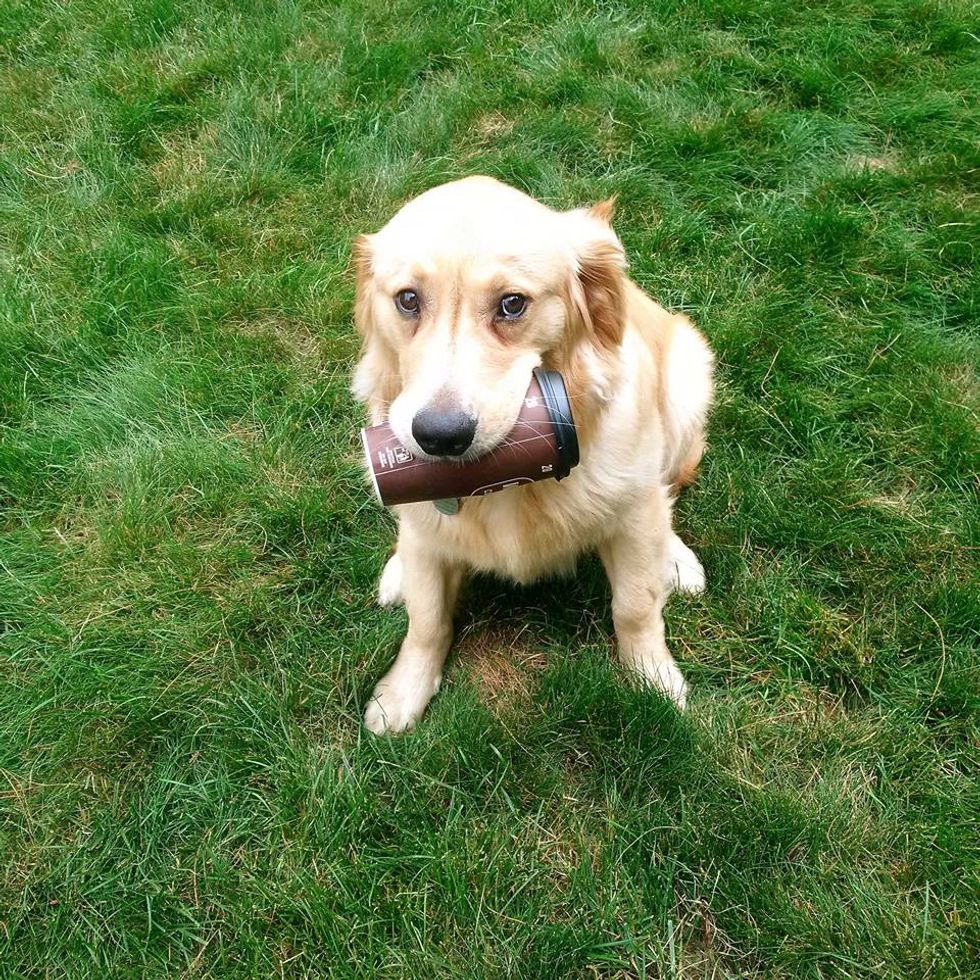Every Golden retriever owner has a long list of ridiculous stories about their dog's shenanigans. My dog has an acquired taste for my dad's leftover coffee!