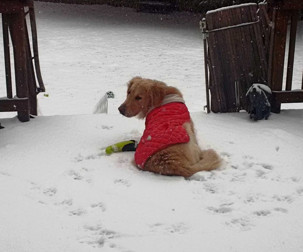 Golden retrievers are the dogs that stick their entire heads into snowbanks, just to see how far down they can go. They are also the masters of snow angels!