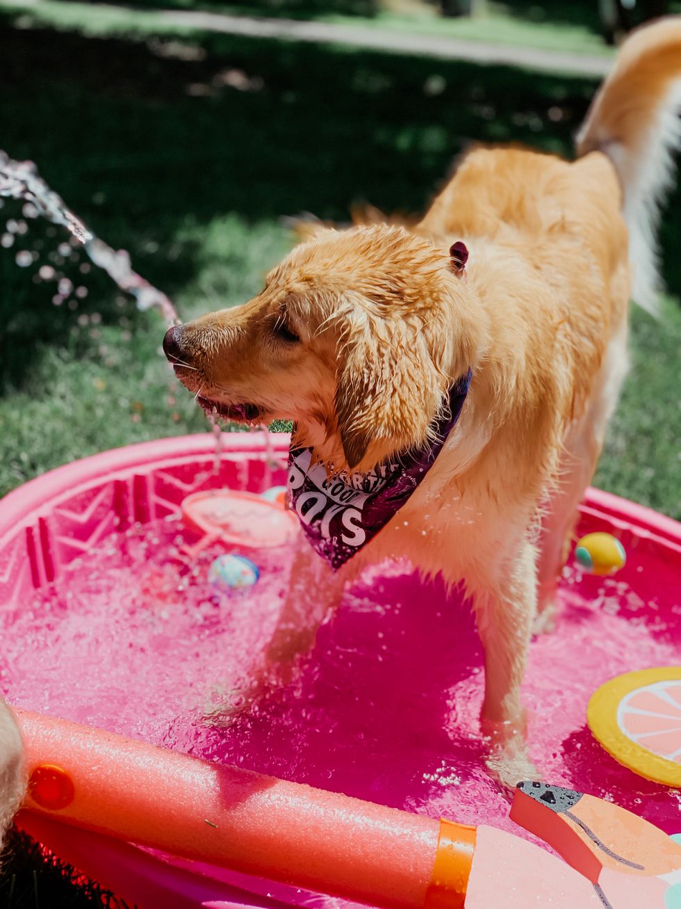 A kiddie pool, lake, sprinkler, or even hose water, golden retrievers will always have a good time in the water!