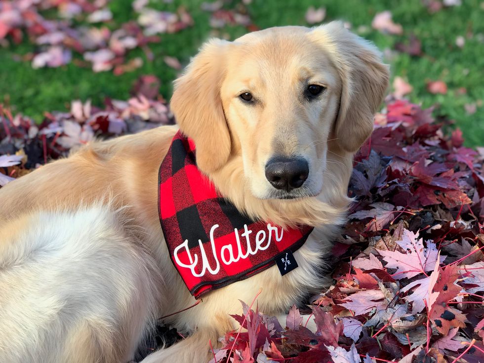 Goldens will do just about anything for treats and they make the cutest models. Sometimes we dress him up in silly outfits, like Santa hats, Halloween costumes, sweaters, and the cutest bandannas.