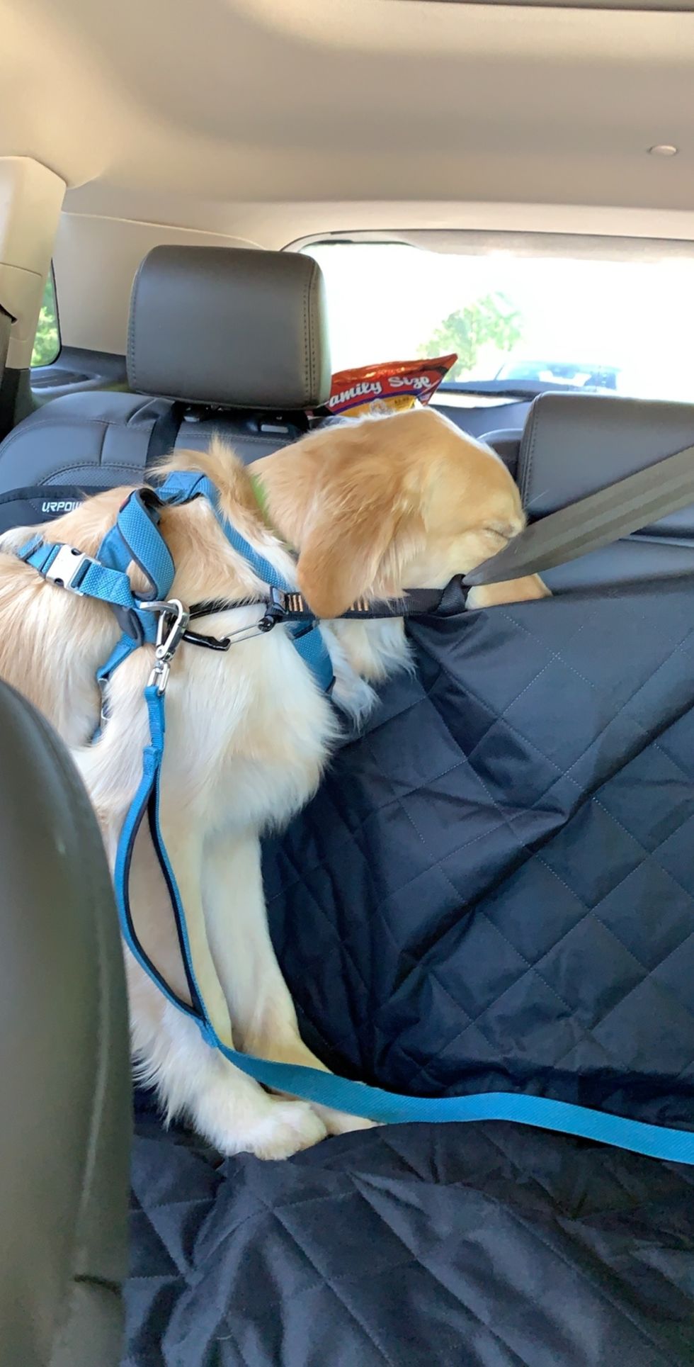 Walter sleeping in the car.
