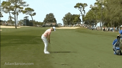 "Oops. Darn. Nobody saw that. Lemme just fill it in real quick. Pat it down like a pro. Don't worry, fans, I meant to do that. Just practicing my divot filling in skills."