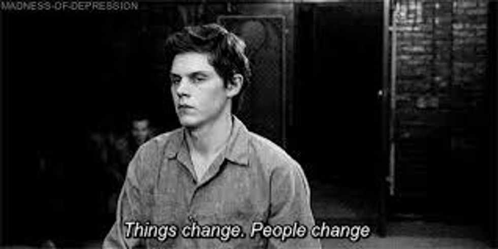 I have never understood why so many people (including myself) are afraid of change. Change is one of the most important aspects of life and everyone changes. Most of the time change is good, healthy, and crucial for growing up and maturing. It can actually be bad if things don't change and can negatively affect someone's life.