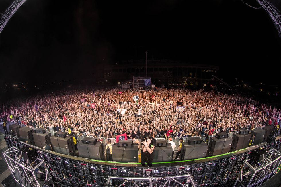 The reason I went back in 2017 was to see the BassGod, Lorin Ashton, aka Bassnectar . You’ve probably heard his most mainstream song, “Basshead.” Other than that though, Lo’s music is a taste that you either like or not. He isn’t any genre, he’s literally EVERY genre. That terrible description goes to show how his music can’t be explained - you HAVE to experience it to understand. It was my second time seeing his set and I got rail (the front row - get your head out of the gutter)! I even made the ceremonial family photo Bassnectar takes at the end of every show!
