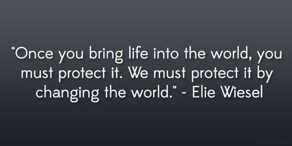 I write this article today not to say that we are facing another event like the mass purposeful extermination of 6 million people. Instead I write to say that Elie Wiesel, a victim of this heinous cruelty, grew up to fight for humanity. We must also fight for humanity. With his death, in the absence of such a strong spokesman for justice, we must be that voice. We must stand up for the Christians overseas who are being slaughtered by ISIS, for the homosexuals in America who were shot and killed by people who cannot love, for the genocide taking place in Syria and Iraq, we must be their voice.