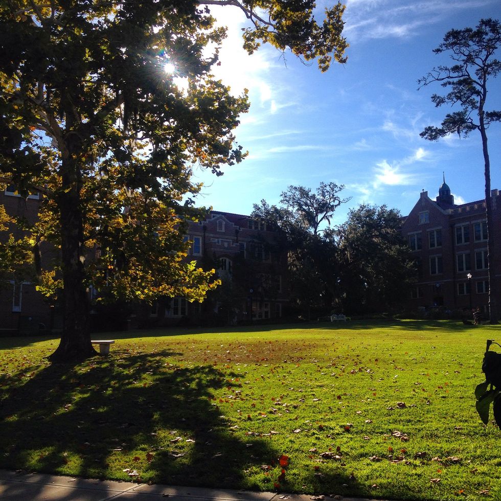 Freshman year was a rough one for me. Everything was new, and everything was scary. And then one day, in Statistics class, the girl next to me commented on my F. Scott Fitzgerald tote bag, and we became instant friends. Sarah Hart was the first friend I had the honor of making all by myself in college. We spent months and months adventuring together, climbing trees, having sleepovers, and sipping good coffee. Some of my favorite memories are of our hangouts on Landis Green, her strumming her guitar, me reading a novel, the sun warm on our faces. She's still one of my dearest friends, and I have Florida State to thank for bringing us together.