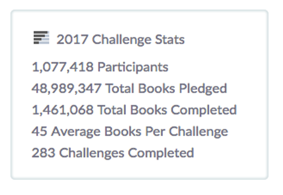 Every new year, you can decide to participate on the Goodreads' reading challenge. You decide your own goal, and by adding the books to your Read pile the website keeps track of how you are doing. Even when I have failed miserably the past few years, it has definitely motivated me into reading more books every year.