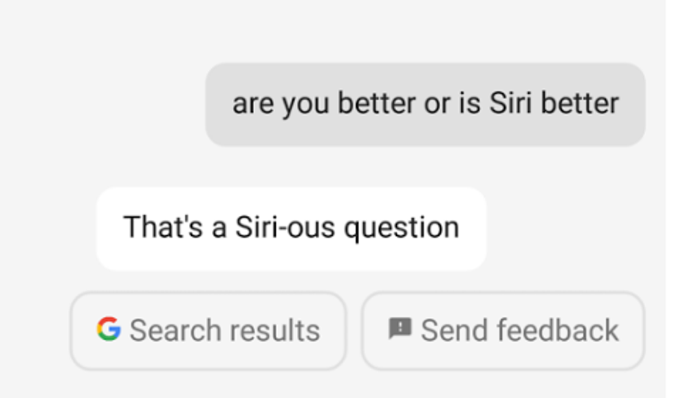 Who's the funniest? The above is just one example, but there are far more examples of Siri's less-than-kind responses that I've left for the final category. Otherwise, seeing how Siri is basically the AI equivalent of Breanna Lee in terms of savagery, I'd have to give this category to her. Although I have to say that Google Assistant's humor is far cuter.