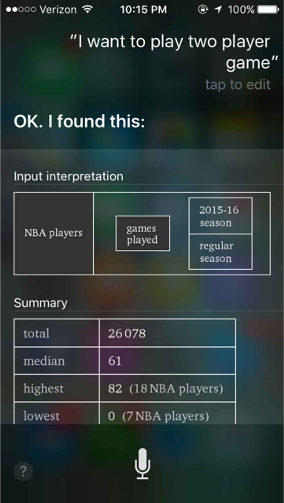 All that aside, not bad. The game on Google Assistant even had its own intro and outro jingle. I've never seen Siri offer a game show-esque form of entertainment. No, instead I got this: