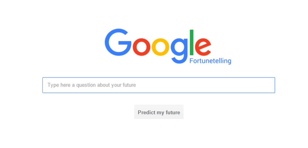 Being as gullible as I am, I found this link to what I thought was a Google search engine that would tell me my future. With finals coming up, I needed any indication that I was going to make it through. So when I stumbled on the search engine, my excitement was building.