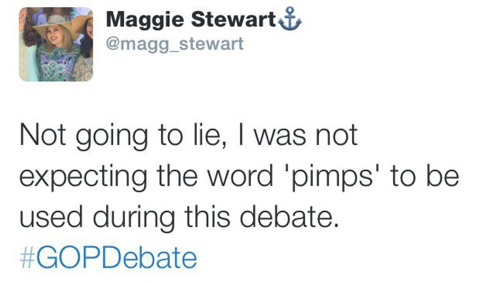 One of Huckabee's most remembered moments was his response when asked about transgender people being welcome to serve in the military. He responded, "The military is not a social experiment. The purpose of the military is kill people and break things." Seconds after that second sentence left his mouth, twitter exploded and it was posted EVERYWHERE. This wasn't the only thing he said that excited the twitter world, and the rest of the world watching. Somehow, when discussing the topic of Social Security, he said, "The Fair Tax transforms the process by which we fund Social Security and Medicare because the money paid in consumption is paid by everybody, including illegals, prostitutes, pimps, drug dealers, all the people that are freeloading off the system now." Yes, you read that right. Who would have ever thought prostitutes, pimps and drug dealers would have made an appearance at the first GOP debate? Not me and not other twitter users..