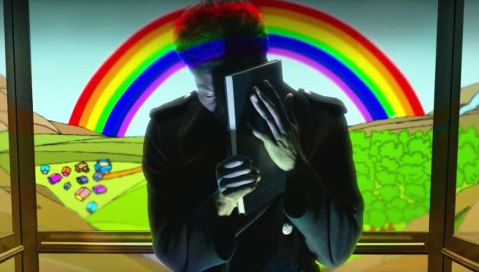 The most jarring part of the song is at the end. The end is comprised of high long vocals of Clementine singing “Hallelujah money” with choirs in the background, and bells ringing. After a few seconds everything fades out as electric sounds start to overwhelmingly grow, and Clementine shouts “Hallelujah money” in a jarring way, that is immediately followed by Spongebob-Squarepants screaming and crying. I think that the end is supposed to be that the speech has ended and the message has been proclaimed, and now upon realization of what is happening it is time to panic.
