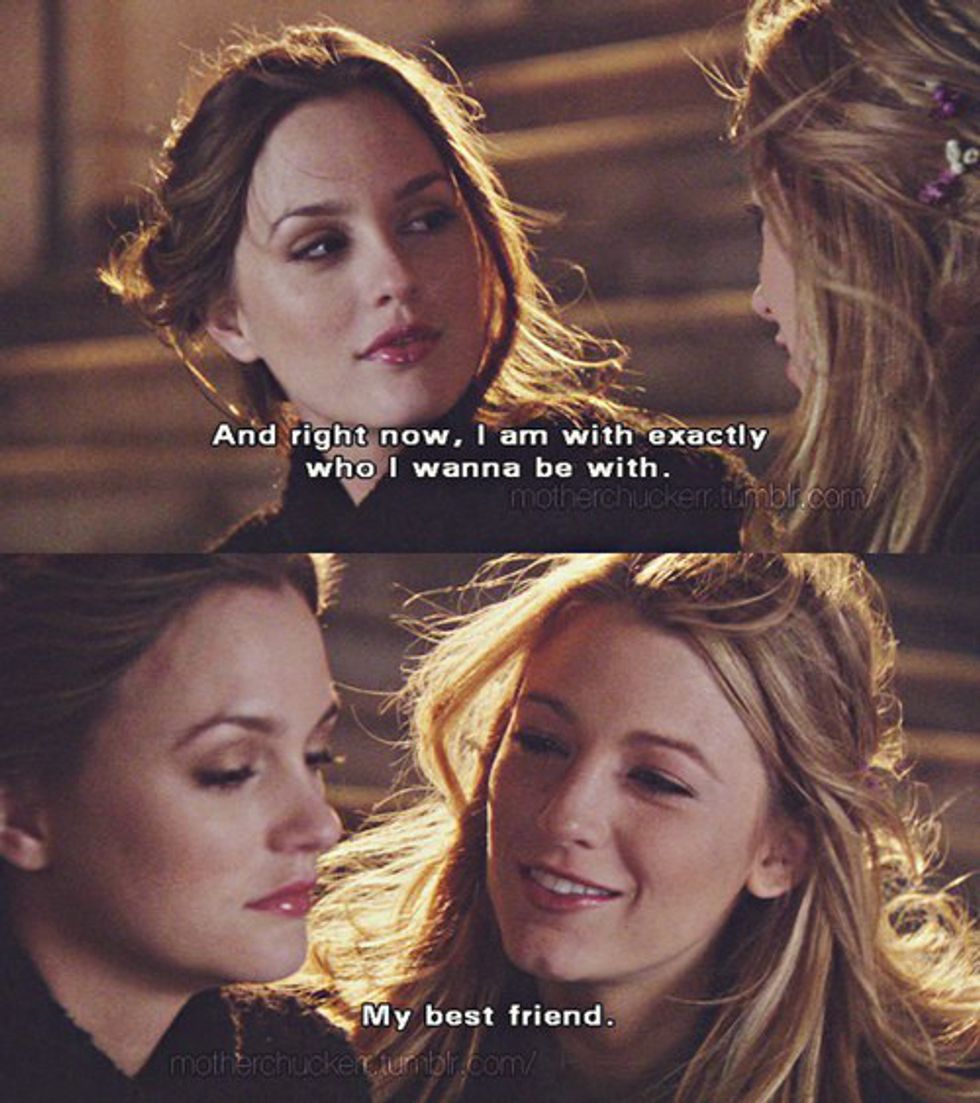 Serena and Blair were infamous for their constant up and down friendship. I mean, really. The show starts out with us finding out Serena hooked up with Blair's boyfriend. Then comes the parade of jealous fights, angry arguments, unnecessary schemes, hurt, and betrayals. But they always find a way back to each other. If one of them is struggling, the other one always swoops in, saves the day, apologizes. the right things are said, and the dynamic duo are back in action by the next episode. They remind us each and every time how important it is to have your best friend. They're your best friend for a reason. They're you're best friend because they understand you like nobody else can.