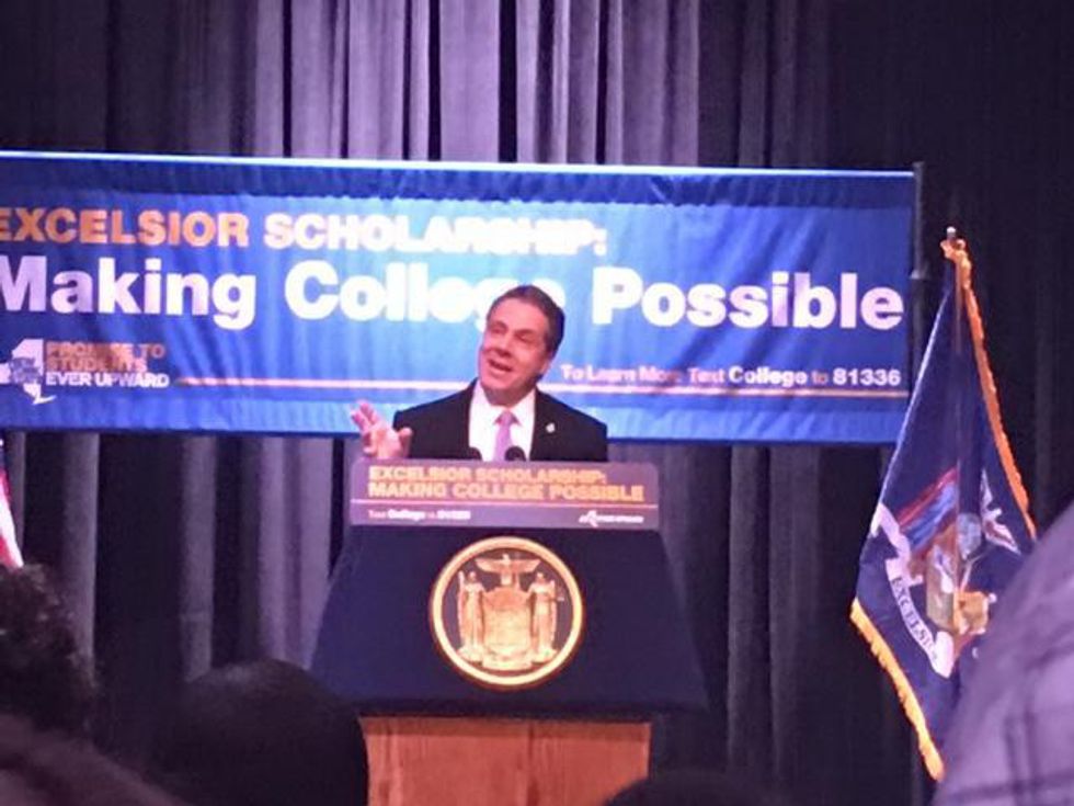 Cuomo began to praise how once, our nation was number one in terms with college educated workforce. Today, sadly we are number 11. New York State once was number one with college educated workforce. States that surround New York such as Massachusetts, Connecticut, and Vermont have by percentage a higher educated workforce. It's simple math, the State with the highest educated workforce, is the state that will attract most businesses. Meaning, everyone has to go to college!.