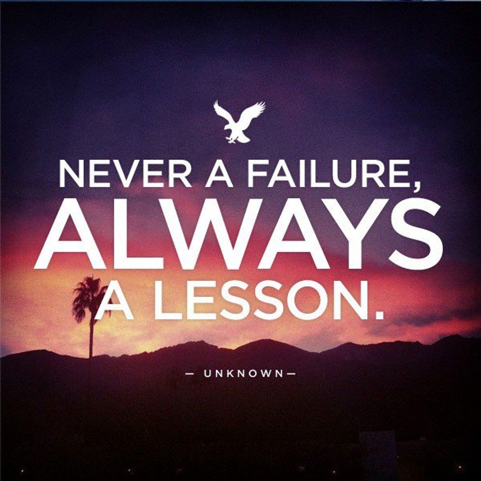 We live in a world where if its not up to the standards set, then we are a disappointment or a waste of an investment. We push ourselves and if we fail we are left with that burden of saying we failed and not only damaging our future more but having others tell us that we should have done differently to please and satisfy them. The world is getting increasingly harder, but it doesn't mean we are a disappointment. We all learn differently, if it takes more than once to pass a class then so be it. Sometimes doing things again is better than accepting a worse grade. I am one to say I've had a few years of unfortunate grades and retaking courses that turns out never mattered anyways. But I lived and learned through it. We fail, we get up and we try again and that is the best we can do in the end. If the goal is to graduate then why should we put a pressure that damages our health and well being when we can turn it to be a helping experience to become a better student. So to those that may have done poorly this semester; take a breath, have a mini-melt down, get up and plan to better yourself. It's your life and no matter if family or friends or anyone else gets mad, you are the only one who can change it and make it a better for the next time. Go prove society wrong and show that even if a semester was bad, it doesn't define you totally as a student nor as a person.