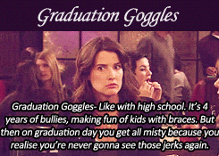 My graduation goggles didn’t kick into extremely high gear though until my freshman year of college. I had to constantly remind myself to not get upset and sentimental about the things that I used to do in high school that I can’t do anymore, like go to prom, homecoming, be in student council or choir. It was all over, and as sad I was, I had to force myself to take off those dang goggles and let go.