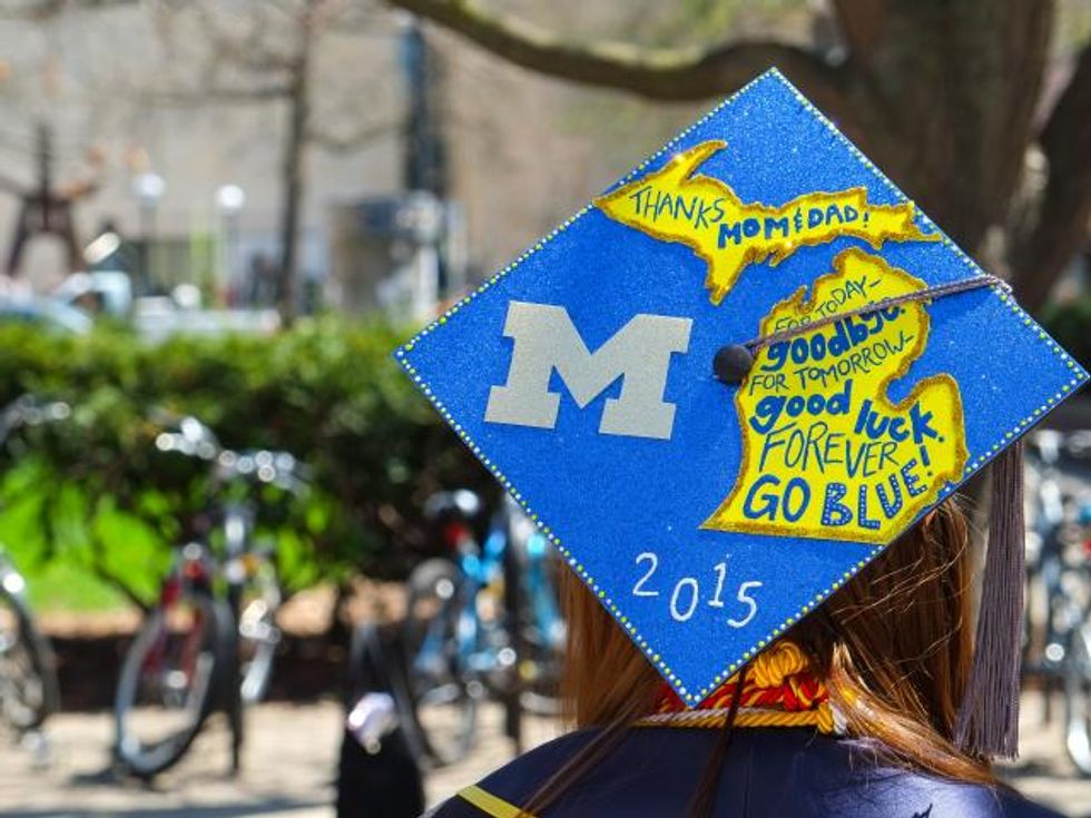 Most high schools don't allow their students to decorate their caps when they graduate. However, at the University of Michigan, one decorate their cap whatever way they want. Students can decorate their hat based on their major or a reference to their favorite T.V. show. There are infinite options, and seniors should spend some time on creating a unique cap.