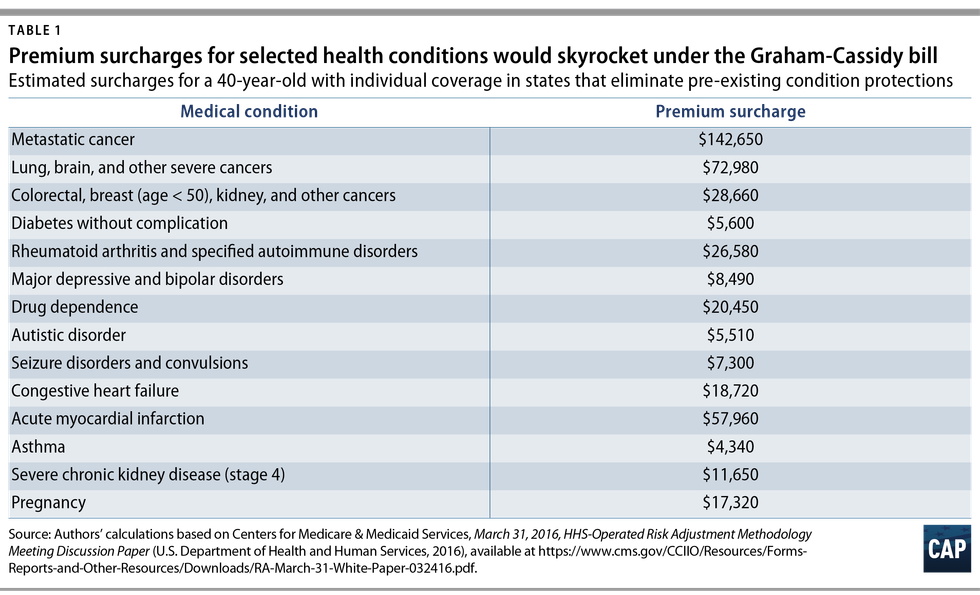 Here is a rough estimation (as the Senate has decided to not wait for the numbers from the official sources) of how much the new bill will cost if you have one of several common conditions: