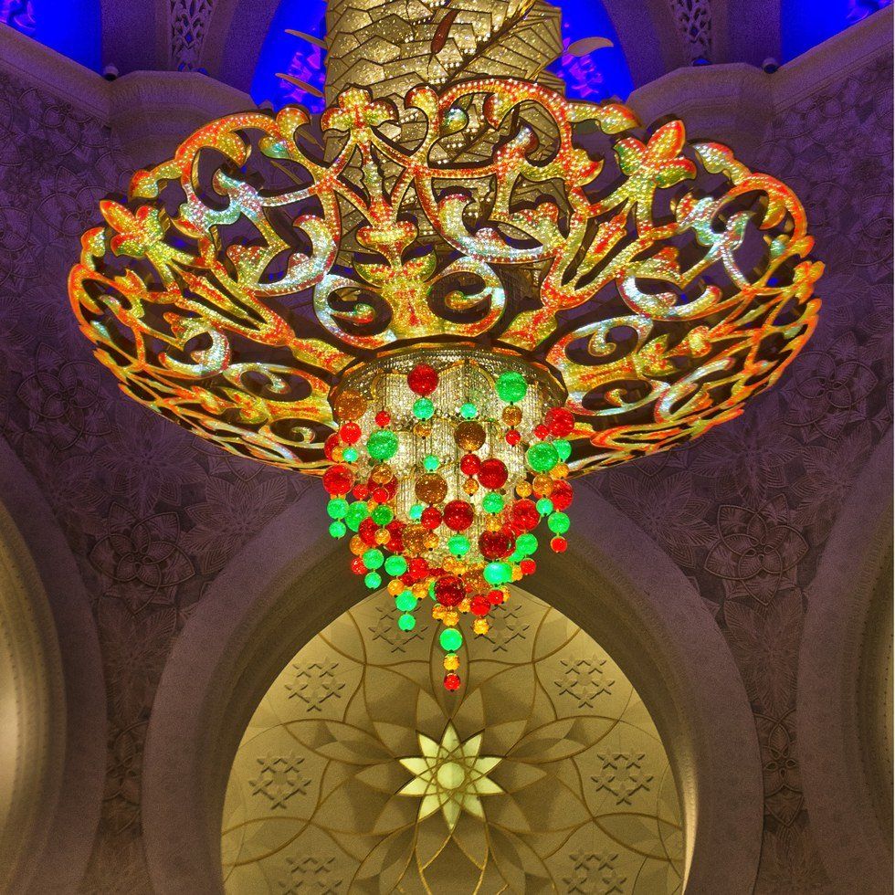 One of the many chandeliers that hang inside the Sheikh Zayed Grand Mosque, Abu Dhabi.