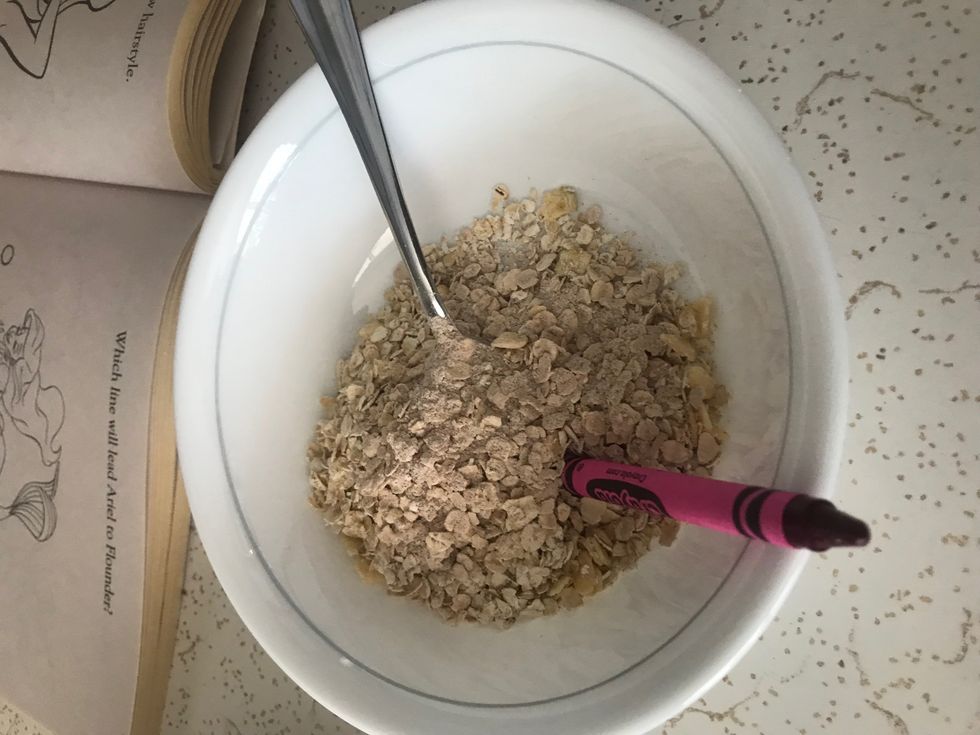 2. Putting a crayon in her oatmeal
