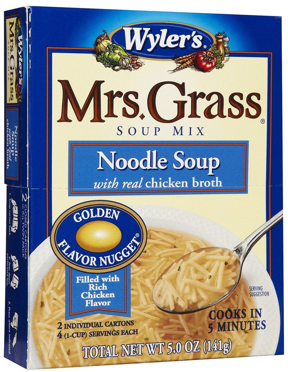 Finally, I acknowledge the death of a life long pleasure. As a child of depression-raised children, we often experienced the Mrs. Grasses noodle soup experience. Pennies and a few extra noodles and dinner was served. It also provided our childhood Saturday night entertainment. Taking turns was a given. The coveted prize was being the "one" who got to put the golden egg in the boiling water. We all gathered and watched the egg magically dissolve into the water. Oh the thrill. Mrs Grasses has continued as a mainstay of late night dinners. We all have those times when we come home and just do not have the energy to cook, or even defrost, dinner. And then we can turn to Mrs Grasses and all is well. Obviously, the magic of the golden egg has disappeared. We still steal a glance to see if it is disappearing, and turn away with a nostalgic smile. There is still memory magic there. Last week I shook the little box in search of my golden egg. No egg found. A terrible mistake, but life goes on. This week. No egg. The terrible dawning that the age of the golden egg has passed. Dispassionately disposed of by the latest of the large corporations acquisitions of our little Mrs. Grass. After all, what's the big deal about a little egg.