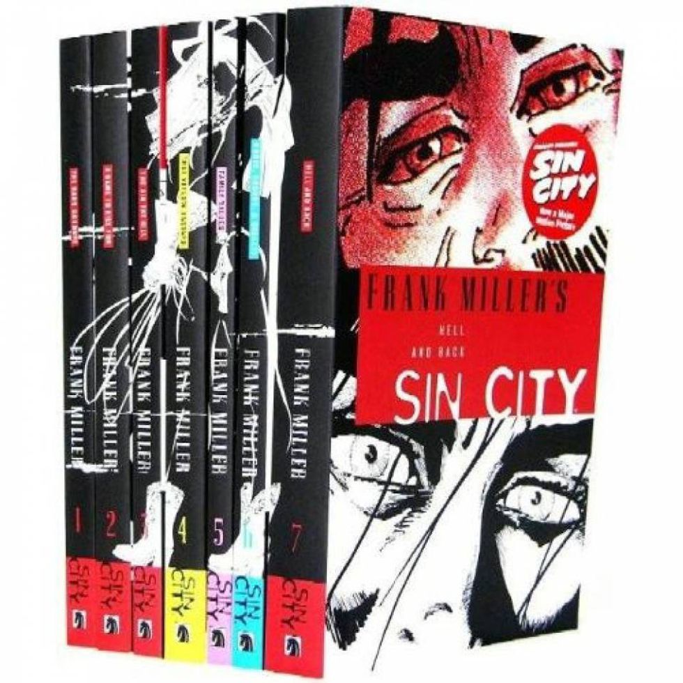 This seven-part series by Frank Miller is a collection of stories that follows characters living in Basin City, dealing with the corruption of the church and state and vengeance. Each of the seven novels has character interwoven to connect the stories together.