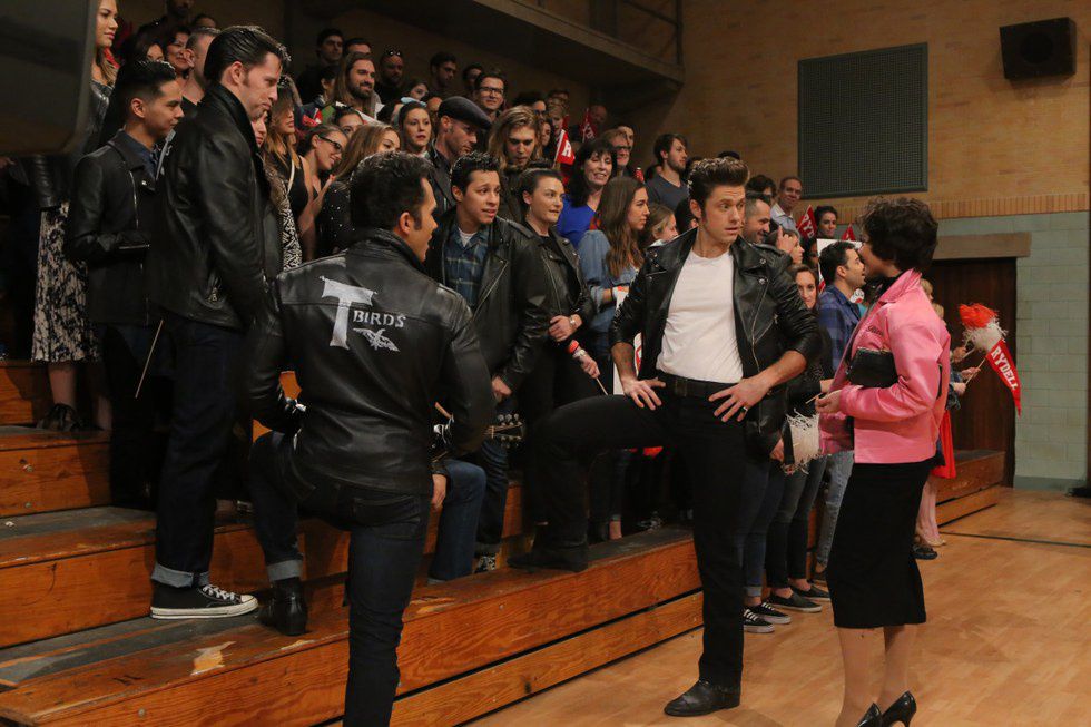 One thing spectacular that "Grease Live" did that no other live TV musical had done, was use multiple film sets and a live audience worked into the actual scenes! Instead of one sound stage and silence after musical numbers, "Grease Live" actually brought you into the 50s with scene changes, extras and insane props which made it feel like a real movie. Not to mention the incredible costumes that made the Pink Ladies cute as can be, and the T-birds sexy as ever in that leather.