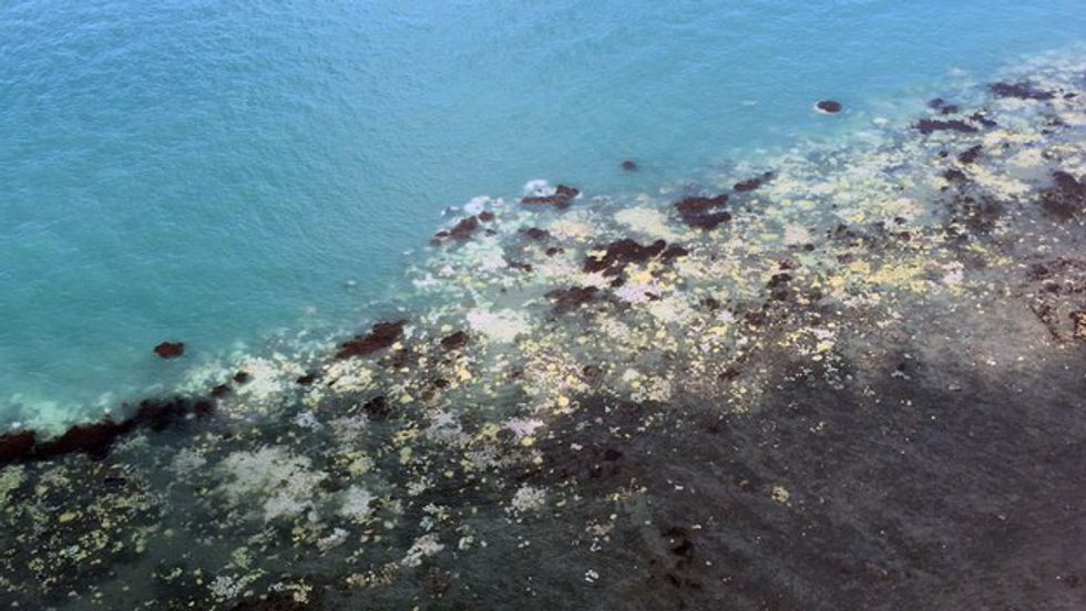 Earlier this year, a coral bleaching event took place at the reef. According to Terry Hughes, a professor and convener at Australia's National Coral Bleaching Taskforce, coral bleaching, "occurs when abnormal water conditions, such as rising temperatures, expel tiny photosynthetic algae called zooxanthellae, turning the coral white." The picture below shows what this looks like.