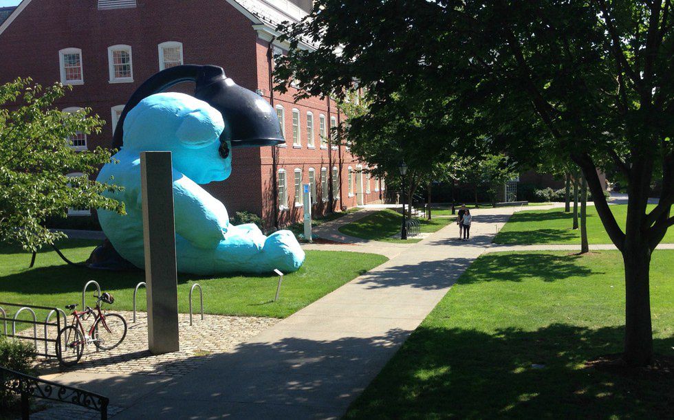 Ruth Simmons Quad: a peaceful haven right off Thayer street, where you can find students lounging on the grass, in hammocks, and on benches, enjoying the warm weather while it lasts. And then, off to the right side, there sits the baby blue spawn of Satan sent above to Brown University to terrify, amaze, and divide. What follows is a list of reactions we have all had to this [expensive] piece of art that has graced our campus this year.