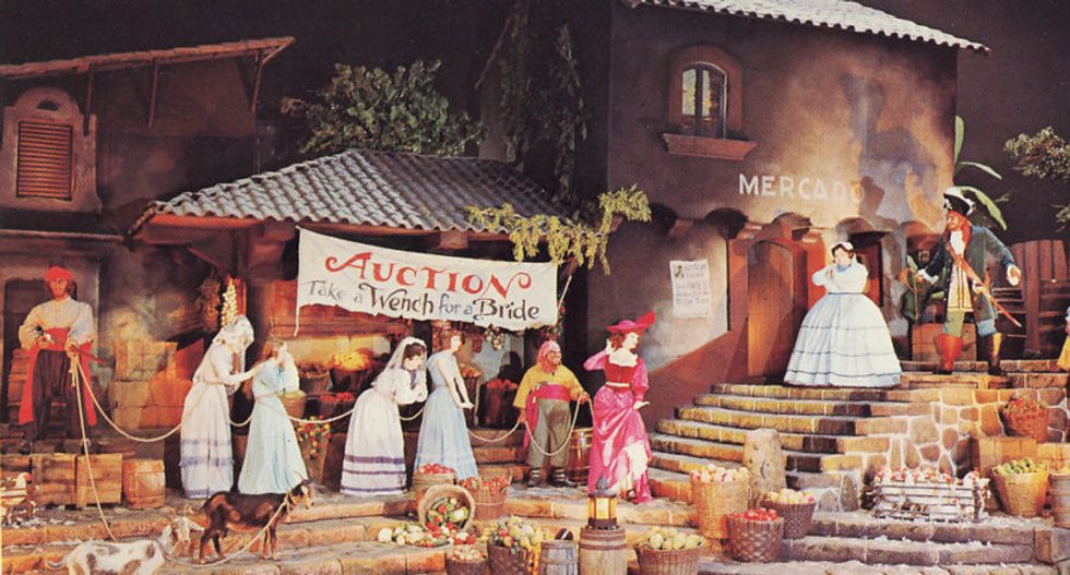 I mean the words of the song pretty much explain this argument, with phrases like "We kidnap and ravage and don't give a hoot. Drink up me 'earties, yo ho" basically telling you that pirates weren't the greatest role models. A lot of people are arguing that the reason behind the change is because of the negativity this scene has, when the obvious argument against it is that of course it's supposed to be bad, they're pirates!