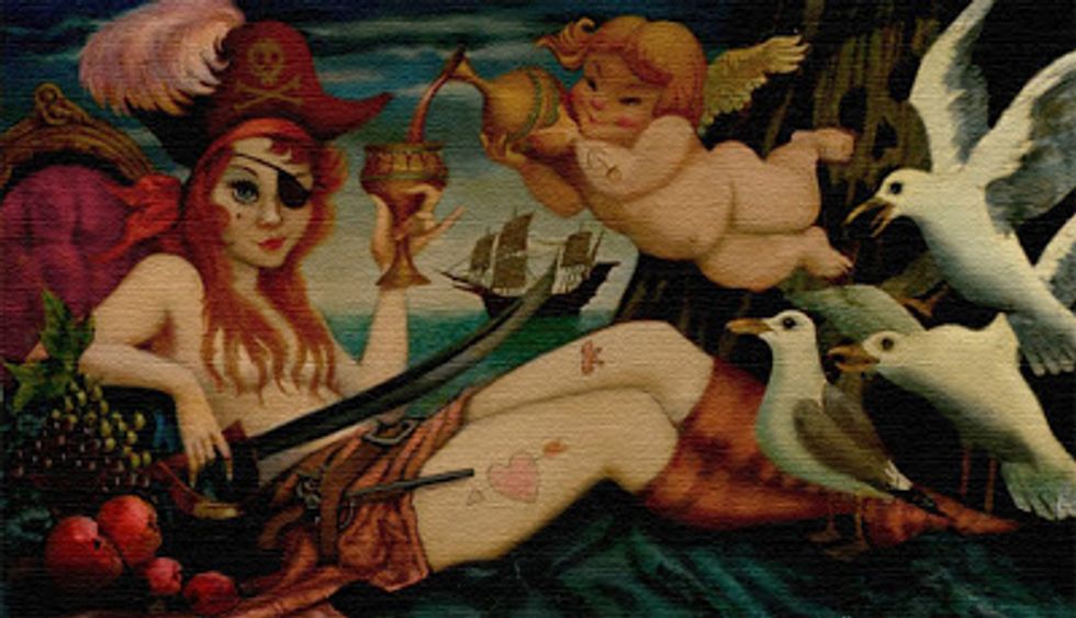 So what that the pirates won't be auctioning off women in the new scene, they are still going to be acting like pirates in the new one. Once again I shall refer to the song with its lyrics to prove my point: "We extort and pilfer, we filch and sack....maraud and embezzle and even highjack. Drink up me 'earties, yo ho". The pirates will be doing all of that in the new scene, just with an awesome female pirate leading it all.