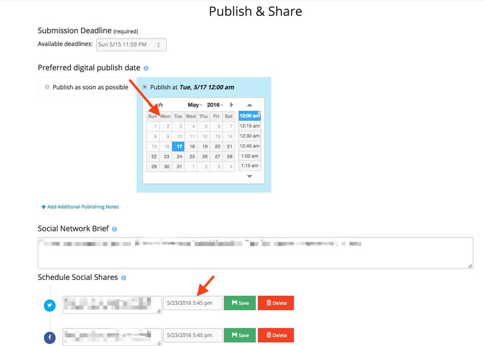 - Make sure that all articles edited are scheduled to be posted on Monday’s date, and that the scheduled social media share is scheduled for Monday at the preferred time.