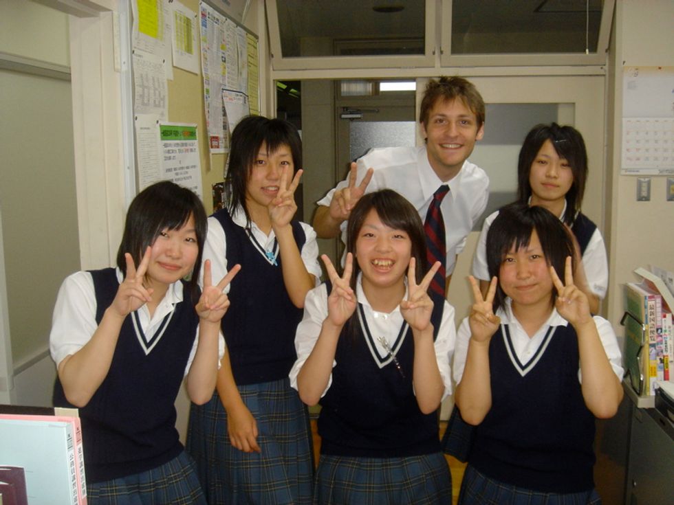 Sticking your tongue out, and throwing up peace signs so that everyone knows you were a part of a middle school squad. Peace signs never go out of style.