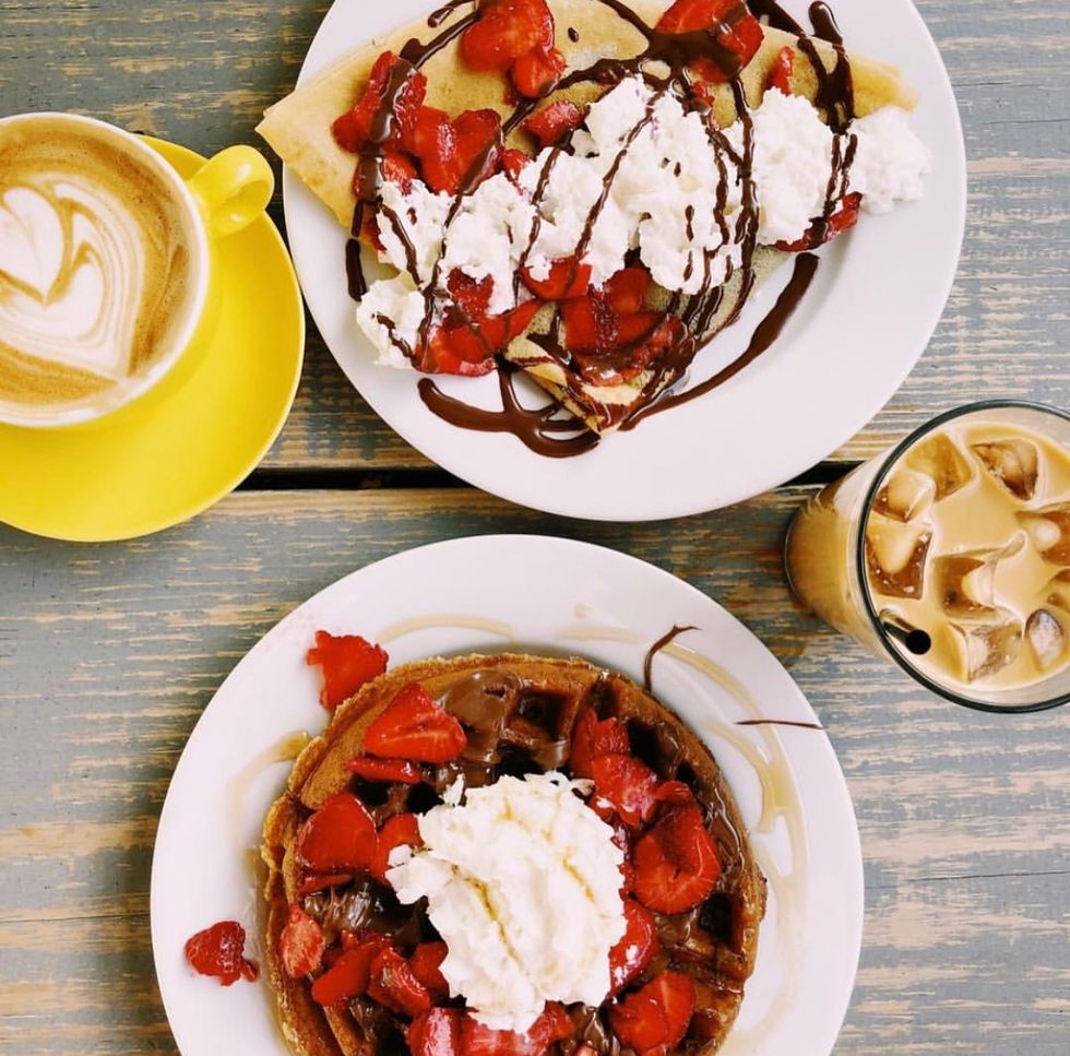 This breakfast destination is located directly in the heart of downtown Greenville. Named accordingly, the coffee shop in nestled in the basement floor of a large building on the corner of Main Street, but is a well-known location of any native. The inviting atmosphere is due in part to the beautiful spread of desserts in the glass casing that you see right when you walk in.