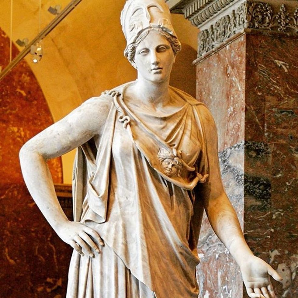 Athena is the goddess you'll always harbor a secret crush on, but know better than to do anything about it. She is another goddess who swore off relationships, and even if she hadn't, she's too good for you. She's too good for all of us--goddess of courage, law, justice, the arts, mathematics, war strategy, and wisdom--she knows better than to involve herself in dating.