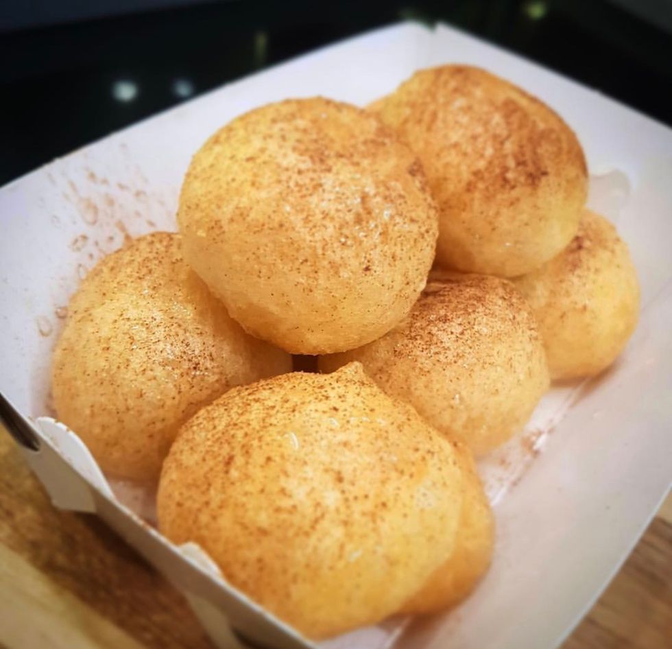 Dissolve yeast with warm water. Beat eggs until fluffy. Add milk, sugar and vanilla. Stir in yeast and half of dry ingredients. Beat until smooth. Add rest of dry ingredients. Beat with wooden spoon until blended. Let stand in bowl until double in bulk. Stir batter again. Drop by teaspoonfuls into hot oil. Cook until golden brown. Serve with hot honey. Sprinkle with cinnamon. Makes about 4 dozen.