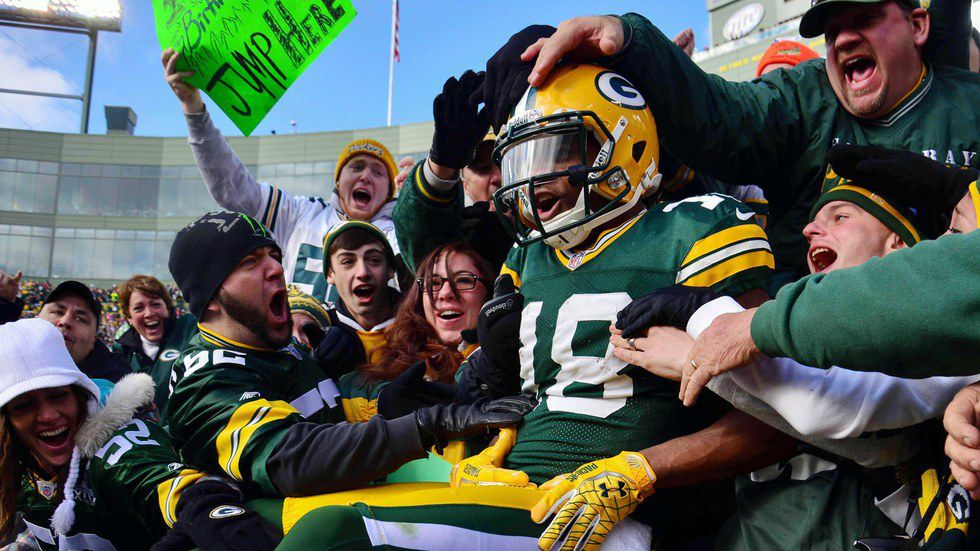 After a touchdown, players jump up into the stands for a Lambeau Leap. Seriously though, what other team lets their fans actually celebrate with them after scoring?