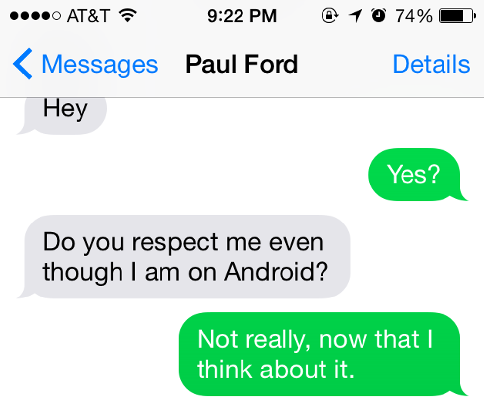 I'm only half-joking. You see, I'm surrounded by friends and family that use iPhones. Nearly every single person I text or call regularly uses an iPhone, and they love them. I, on the other hand, am that stubborn friend. I use an Android smartphone, because I love Android. I could give you a huge list of why I don't use an iPhone and why I don't ever plan on using one - but you'd stop reading out of boredom. So instead, let's talk about these green bubbles.