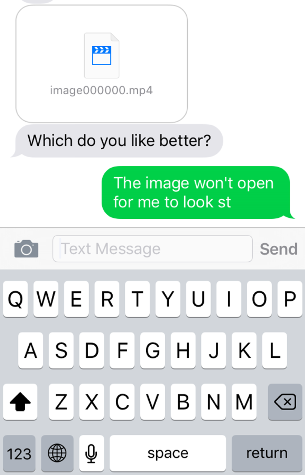 There's also the problem of multimedia (MMS) messages. For example, I needed to send a picture to my girlfriend the other day, so I attached it to a text like any normal person would do. But when she got it, her iPhone 5C thought it was a video. It wasn't a weird format, it wasn't a huge file, and it wasn't sent any differently than any other picture. Her phone just decided to try and play it like a video, so she couldn't see it. I tested this with other iPhone users as well - no dice.