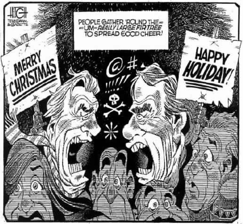 For years Americans have been divided among two groups; the “Merry Christmasers” and the “Happy Holiday” people. This division is so strong that and improper utterance from one party to its rival could result in the most painful and awkward confrontation. To prevent ugly moments, some stores have even gone so far as to forbade employees from referencing the holiday season at all. Lets break down this argument.
