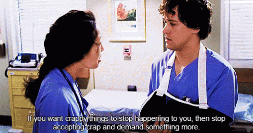 Just watching Cristina's character is inspiring: her ambition, her talent, her work ethic. But not only that, Cristina's character is inspiring to her friends in need. Whether it is telling George to stop accepting crap or helping Meredith in a time of need, she always inspires her friends to get back up and fight.