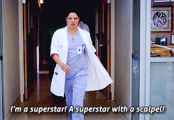 The Orthopedic Goddess knows where she stands and does not allow anyone to bring her down. She doesn't doubt herself about her gifts in operating on bones. She would rather create her own path than allow her wealthy parents to pay for everything. When it came to her sexuality, she was not shy about it because "you can't pray away the gay" (Season 6, Episode 5).