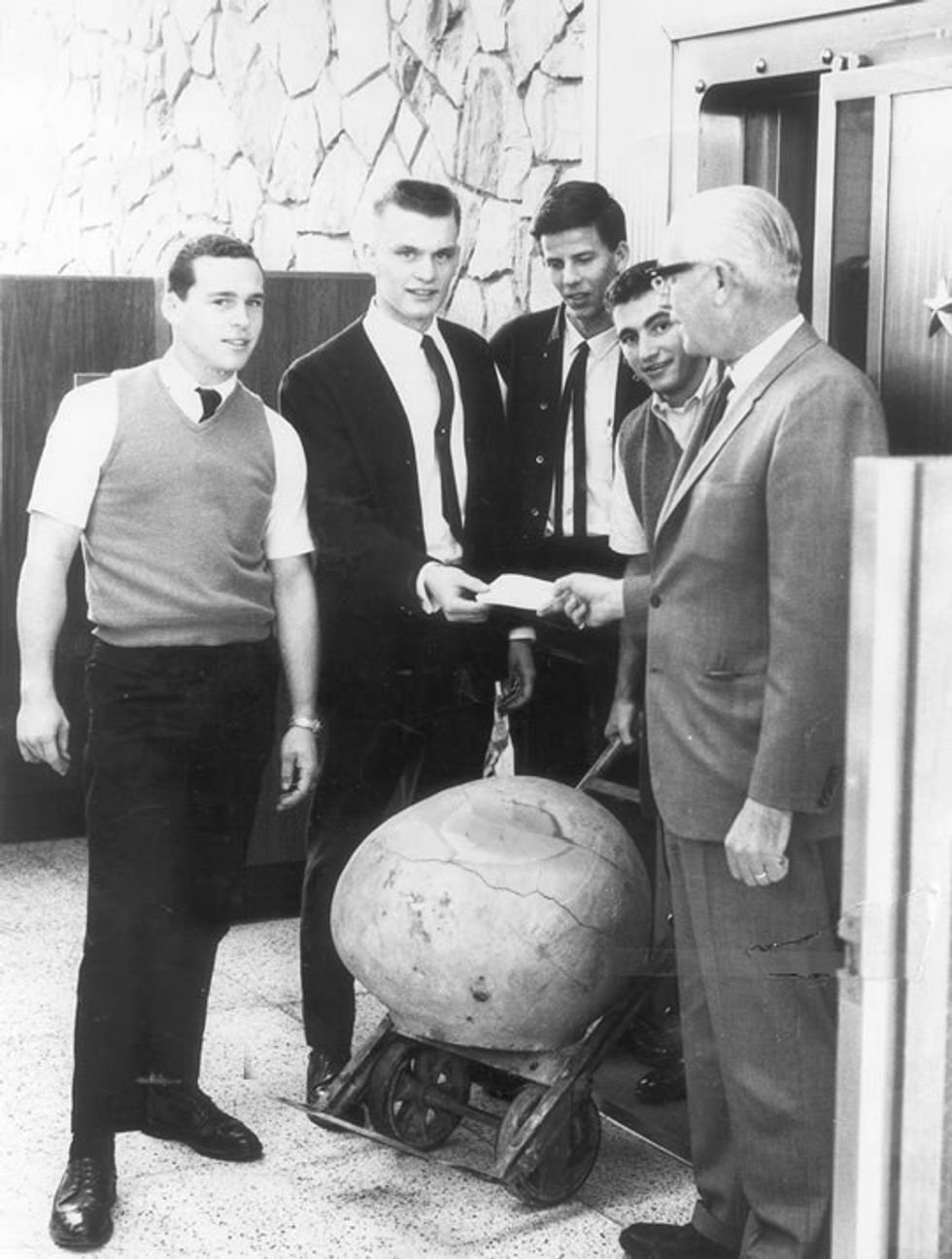 “Part of the tradition of the Egg was that it had to stay in the city limits of La Mirada and be stored in a public place. A public appearance of the Egg was required at least once a month. It was hidden in Neff Park at times and occasionally at Jack Cedarholm’s (’69) uncle’s house, just a few blocks from the school.”