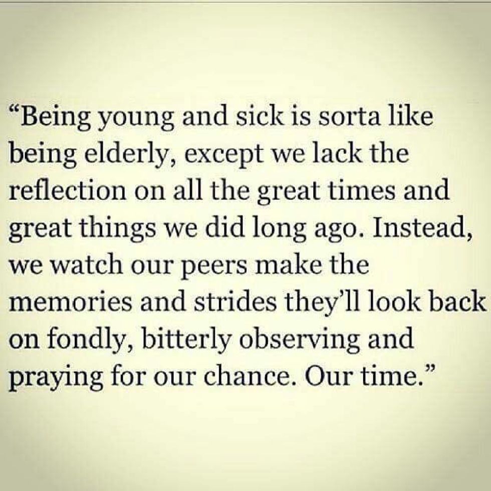 From day one we knew we were a little different than the other kids our age, we weren't quite sure how or why but the older we become the more apparent it became. When we were 8-years-old and in gym class with our friends but couldn't keep up with them or were unable to participate in every activity they did it wasn't a huge deal, yes it sucked but it was okay. As we moved into high school and we see our classmates going out and playing two or three sports a year when we are lucky if we can even play one it was obvious, by then we knew that we would never get the chance to be a normal teenager or lead a normal life. When our friends wanted to go TP'ing or to Great America and we could only go on one, maybe two rides, or were unable to keep up with them TP'ing at every house we went to we knew we would never get to experience our teenage years to the fullest.